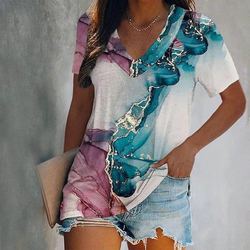 Women 3D Short Butterfly Gradient Summer Shirt