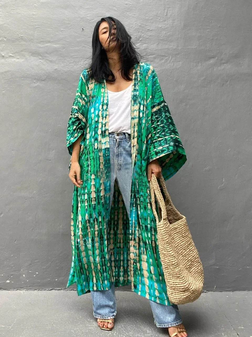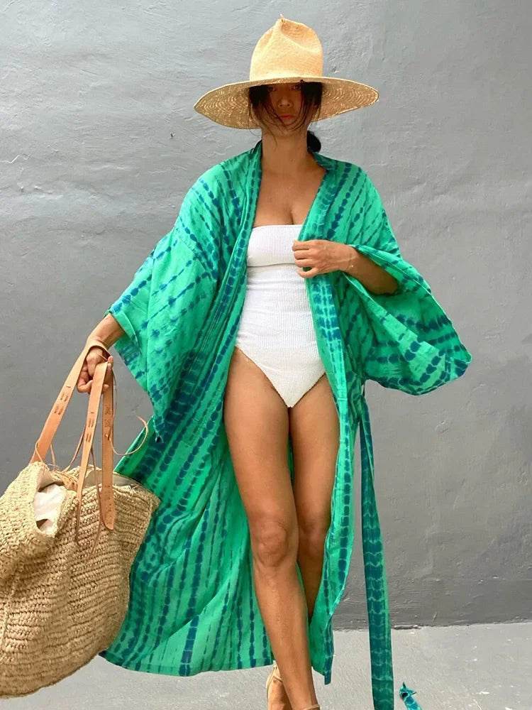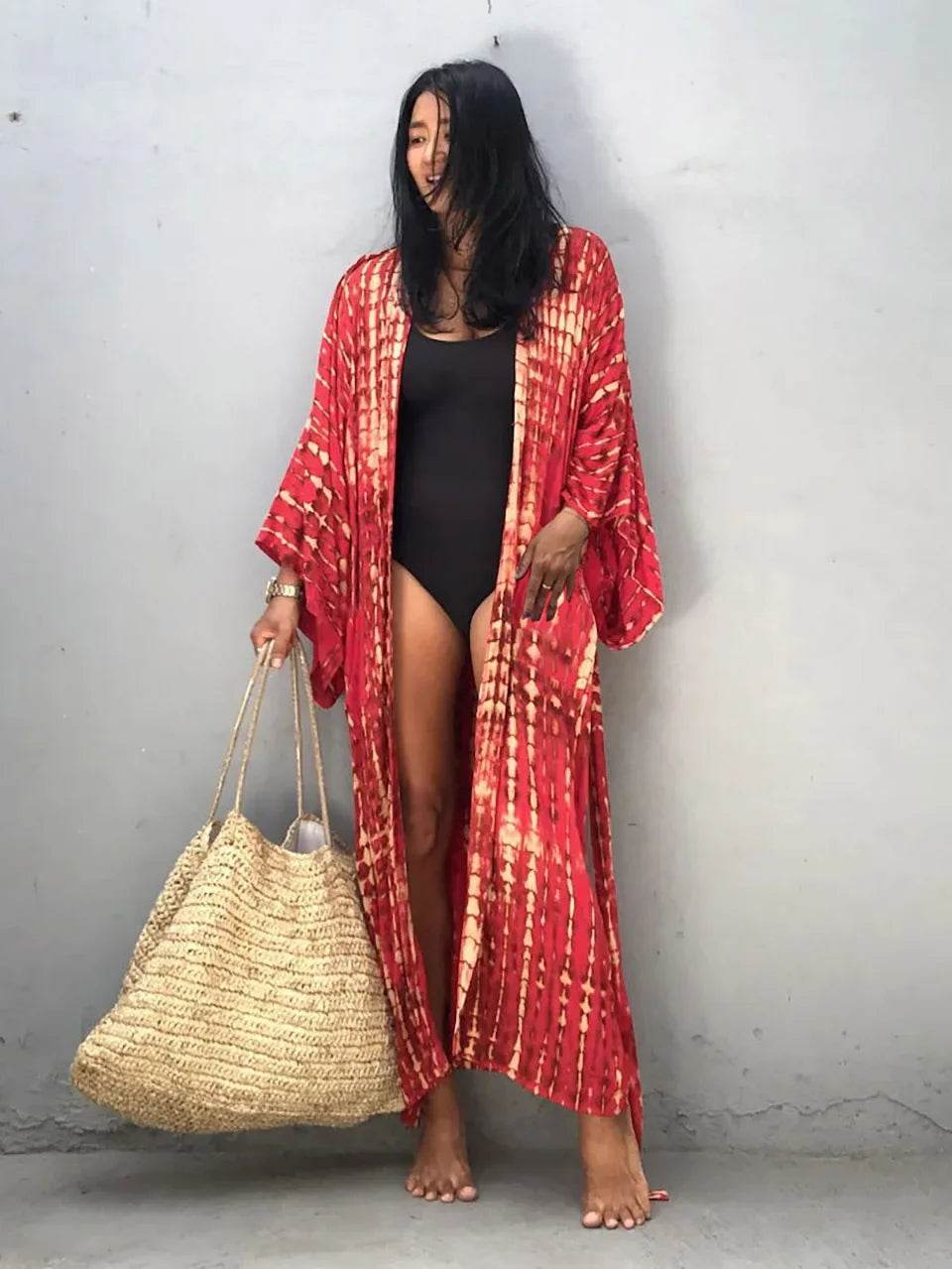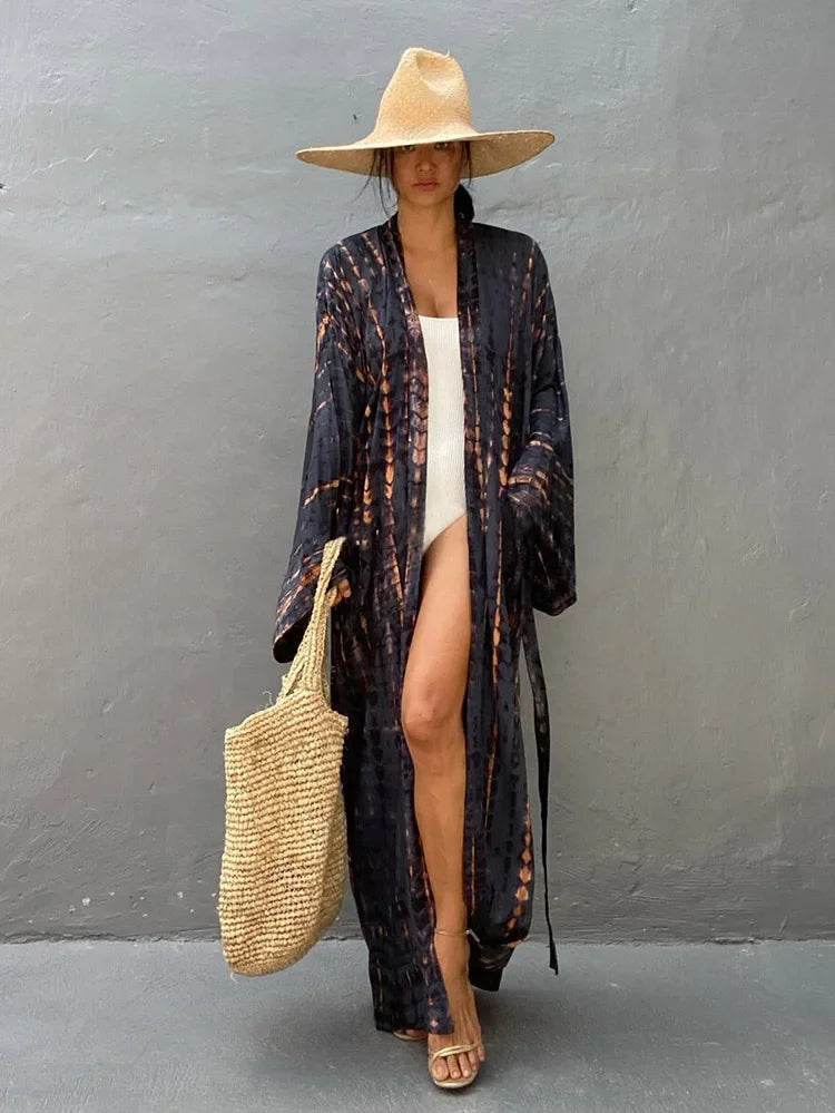 With a convenient one-size-fits-all design, this cardigan is ideal for women of all shapes and sizes. The loose fit and flowing sleeves provide a relaxed yet elegant silhouette, making it easy to layer over your favorite swimsuit or summer outfit.