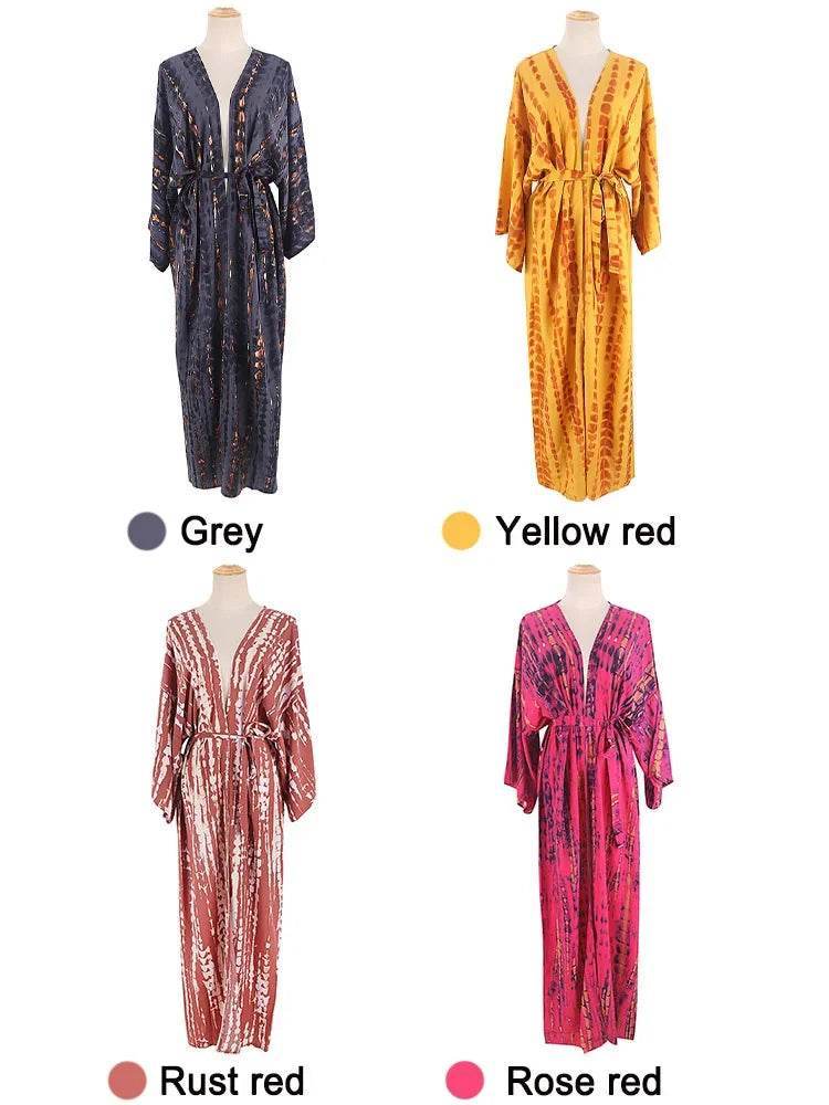 Introducing the Women Boho Stripe Tie Dye Swimsuit Cover Up Cardigan Beach Dress, a must-have for your beach or poolside adventures. Crafted from lightweight and flowy material, this cover-up ensures you stay cool and comfortable while making a bold fashion statement. The unique tie-dye design, available in a variety of vibrant colors like Orange Navy, Red Tie-dye, and Rose Red, guarantees you'll stand out in any crowd.