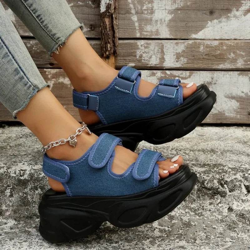 Crafted with a chic blue canvas, these sandals are designed to keep you on-trend. The sturdy platform sole provides stability and support, allowing you to walk with confidence. Available in a range of sizes from 35 to 42, they cater to various foot sizes, ensuring everyone can enjoy their stylish appeal.