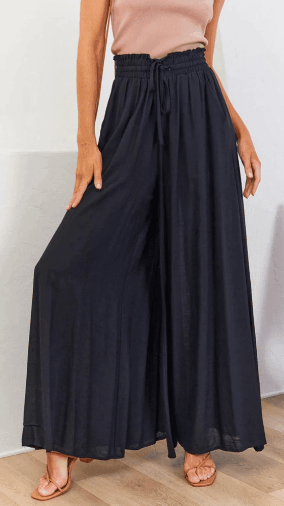 The images showcase the pants' elegant flow and vibrant colors, highlighting their versatility and appeal. Pair them with a simple top and sandals for a laid-back look, or dress them up with heels and accessories for a more polished appearance.