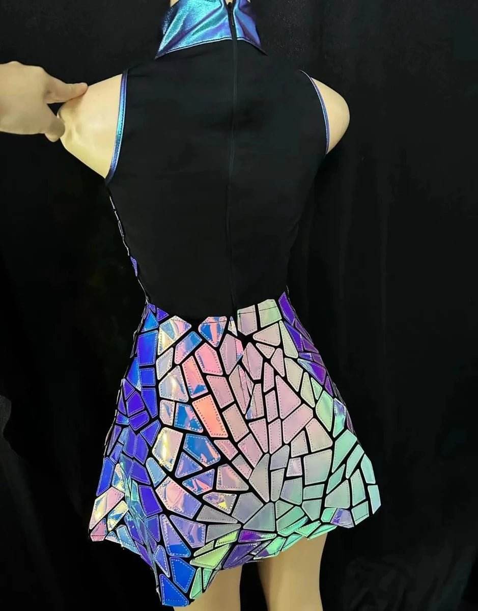 The dress's sleek design is complemented by its comfortable fit, available in sizes S to XXL. Whether you're dancing the night away or mingling with friends, you'll feel both stylish and at ease. The dress's vibrant green and blue hues create a mesmerizing effect, making it a perfect choice for fashion-forward women who love to express their unique style.