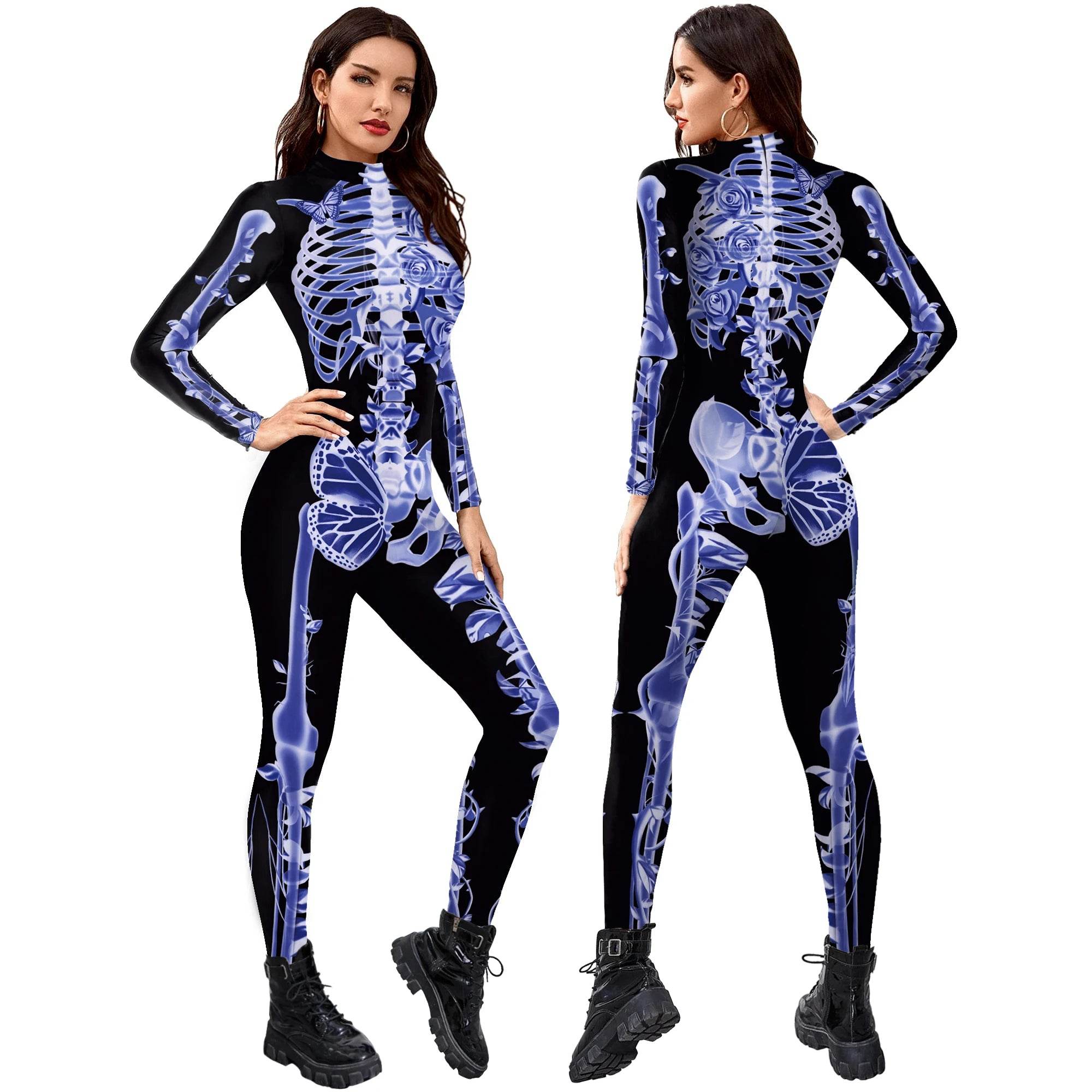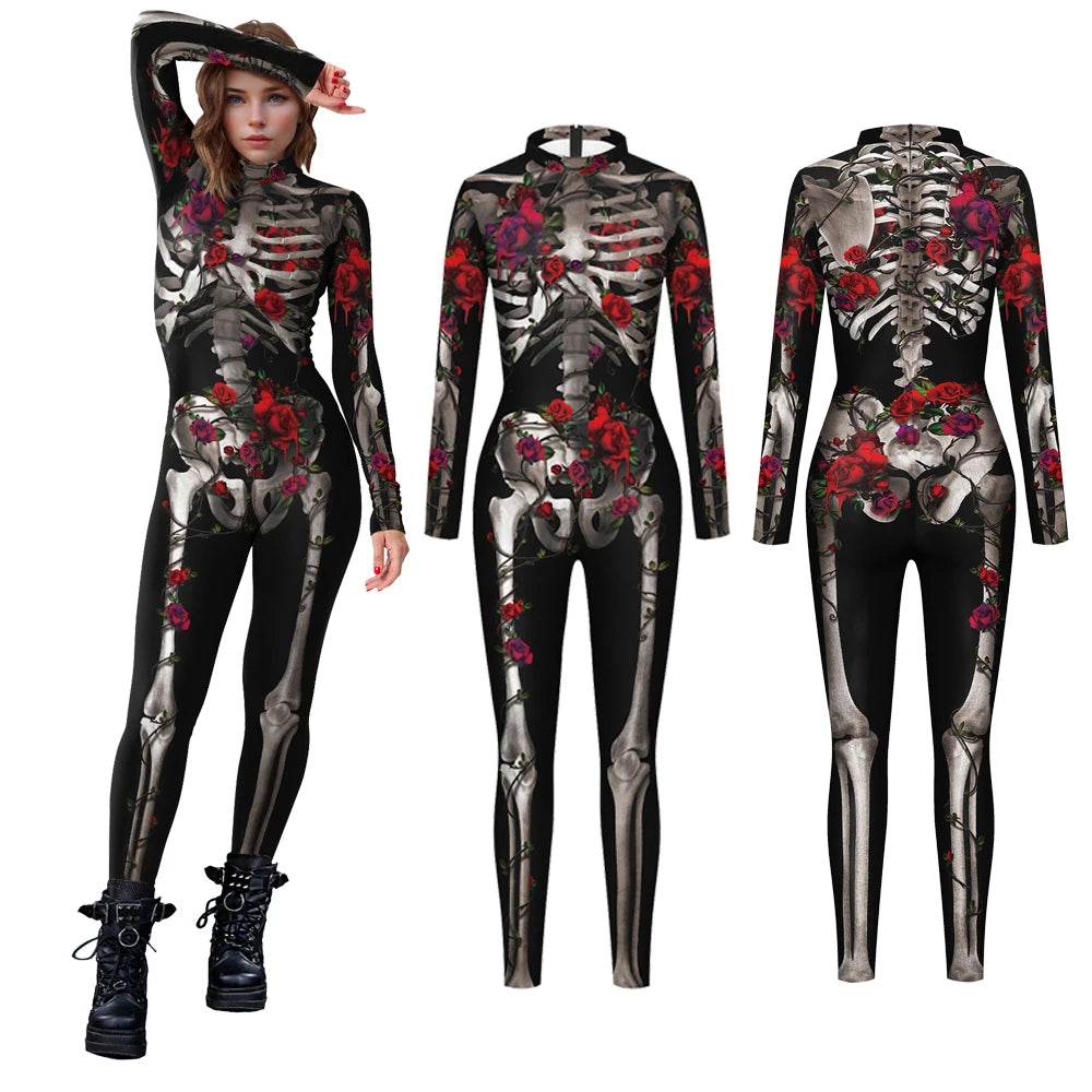 Spooky Chic: Women Halloween Skeleton Cosplay Outfit Jumpsuit