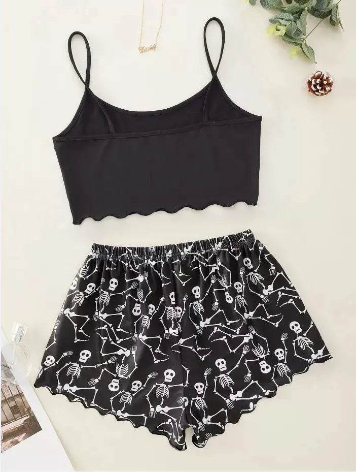 Spooky Chic: Women's Halloween Sleeveless Crop Pajama Set