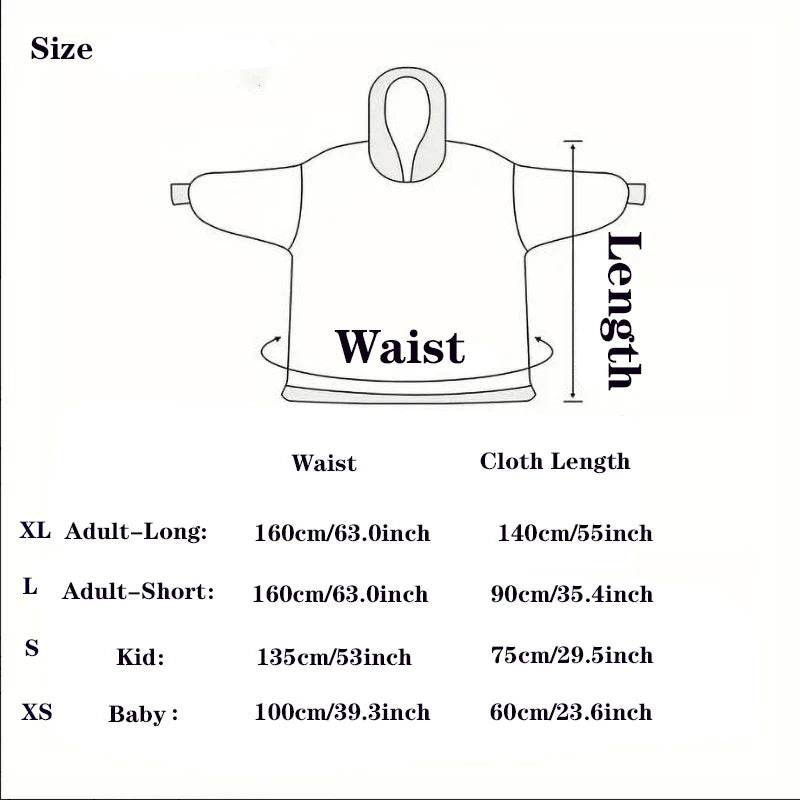 Our blanket hoodies come in a variety of sizes, including adult long and short, kid free size, and baby free size. This makes them ideal for creating adorable family photos or simply enjoying a cozy night in together. The vibrant colors and fun designs are sure to delight both kids and adults alike.