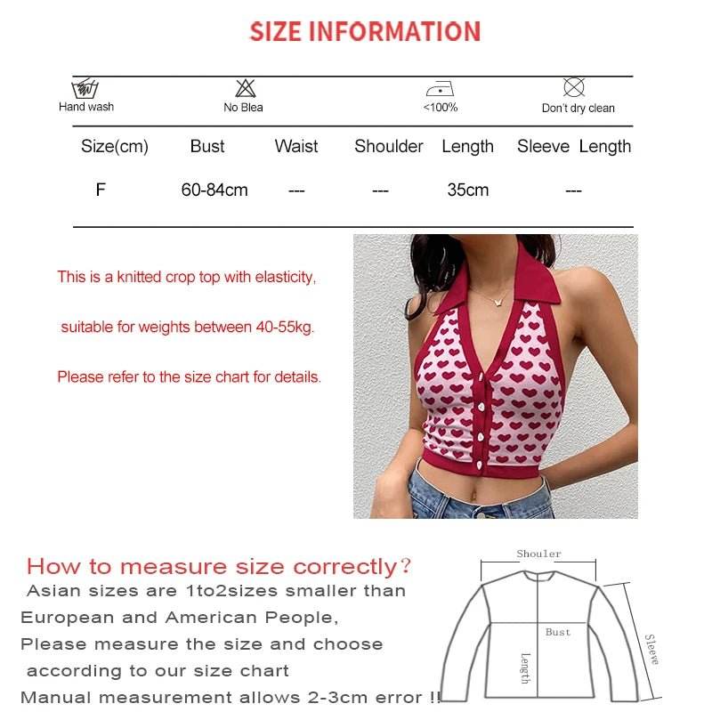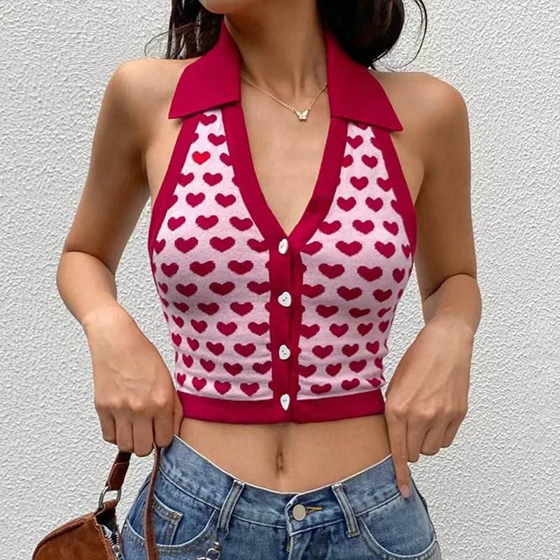 Embrace the summer vibes with our Women Halter Backless Love Hearts Crop Top. These tops are perfect for any occasion, adding a touch of romance to your outfit with their charming love hearts design. The halter style and backless design not only keep you trendy but also ensure comfort and breathability during those warm days.