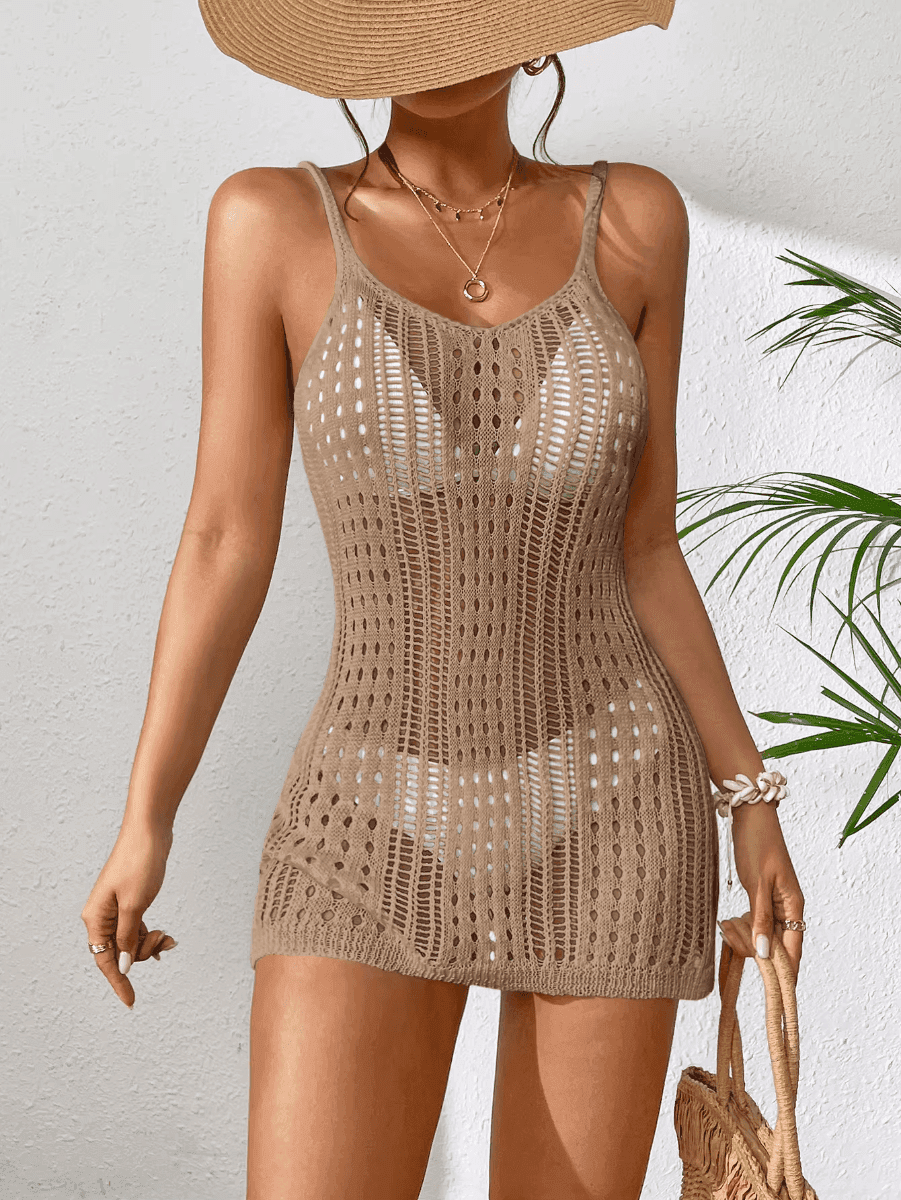 Elevate your beach wardrobe today with the Women Knitted Hollow Crochet Beach Dress and experience the perfect blend of fashion and function.