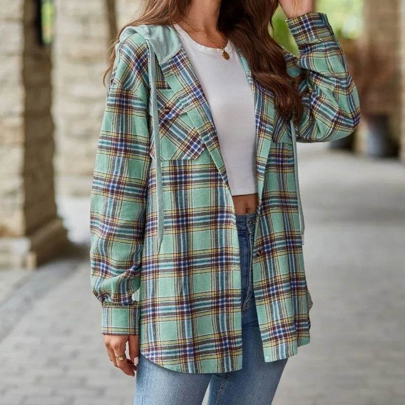 Don't miss out on this must-have piece for your wardrobe. Stay trendy and comfortable with the Women Long Patchwork Plaid Striped Shirt!