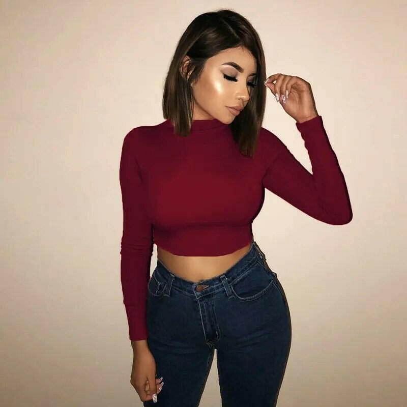 Available in a range of solid colors like Black, Blue, Khaki, Burgundy, and White, these crop tops offer endless mix-and-match possibilities. Pair them with your favorite jeans, skirts, or shorts for a look that's uniquely yours. The high-quality fabric ensures a comfortable fit, while the long sleeves and cropped design add a trendy touch to your outfit.