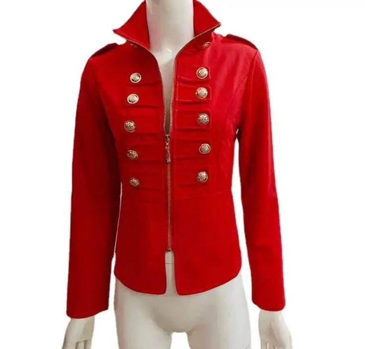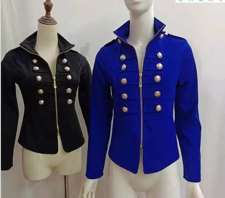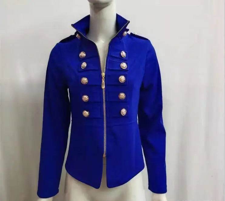 This jacket features a sleek, tailored fit with eye-catching button details that add a touch of elegance. Available in a range of colors including Black, Blue, Red, and White, you can choose the perfect shade to match your personal style. The jacket is available in sizes S, M, L, XL, and XXL, ensuring a comfortable fit for everyone.