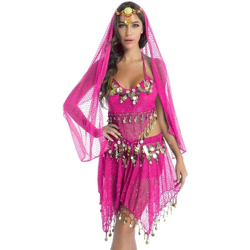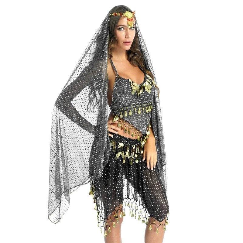 Step into the spotlight with confidence and grace. Order your Women Halter Sequin Belly-Dance Costume Set today and let your inner star shine!