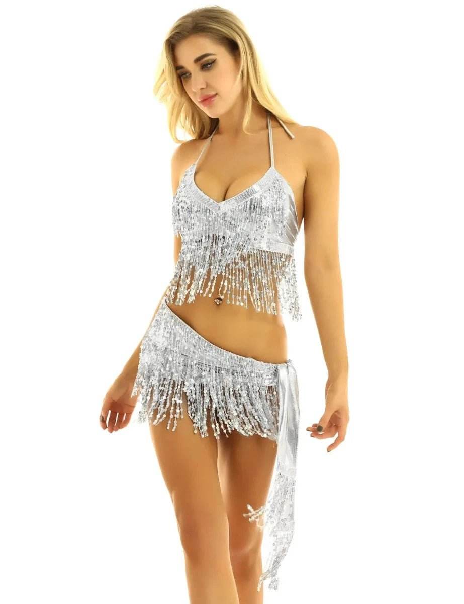 Shine Bright with Our Women Halter Sequin Belly-Dance Costume Set
