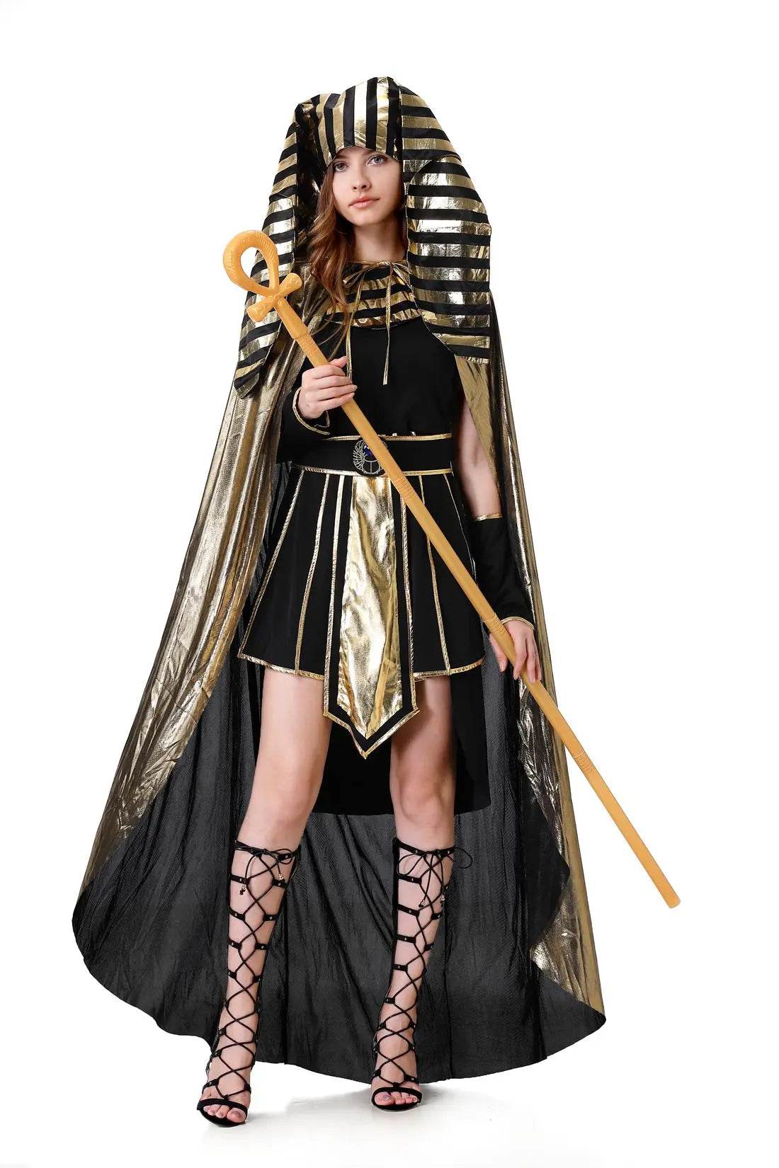 Step into the world of ancient Egypt with our stunning Women Egyptian Queen Cleopatra Cosplay Costume. Perfect for Halloween, themed parties, or cosplay events, this costume will make you feel like royalty. The elegant black and gold design captures the essence of Cleopatra's regal style, ensuring you stand out at any event.