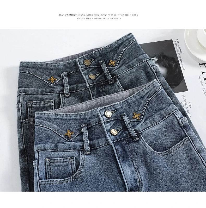 With a high waist and fleece lining, these jeans offer the perfect combination of fashion and function. The zipper fly adds a touch of style, while the convenient pockets are perfect for storing your essentials on-the-go. Available in chic colors like Blue Grey and Vintage Blue, these jeans are a versatile addition to any wardrobe.