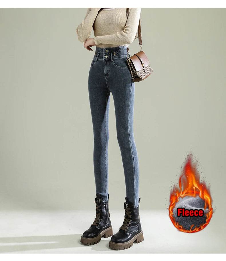 Experience the perfect blend of comfort and style with BLEASENDY's Women Skinny High Waist Fleece Velvet Jeans. Order now and step out in confidence and warmth this winter!