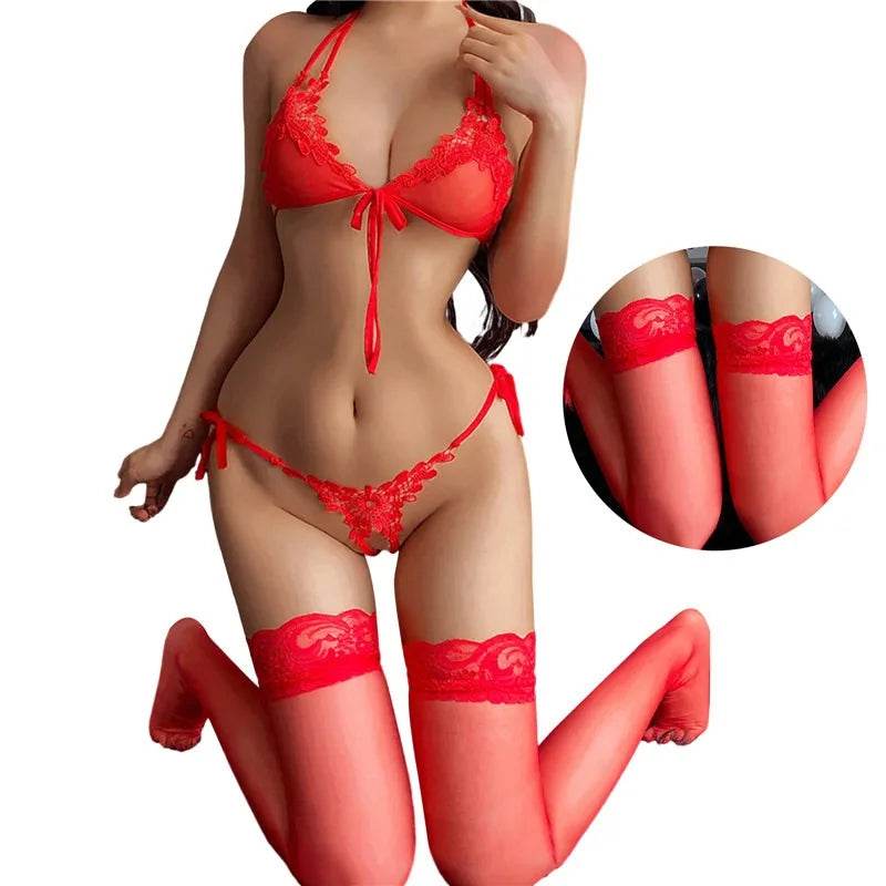 Crafted with delicate lace and a daring open design, this lingerie set is both bold and beautiful. The intricate detailing and soft fabric ensure a comfortable fit, while the adjustable ties allow for a customizable experience. Available in a variety of colors, including classic black and vibrant red, you can choose the perfect shade to match your mood.