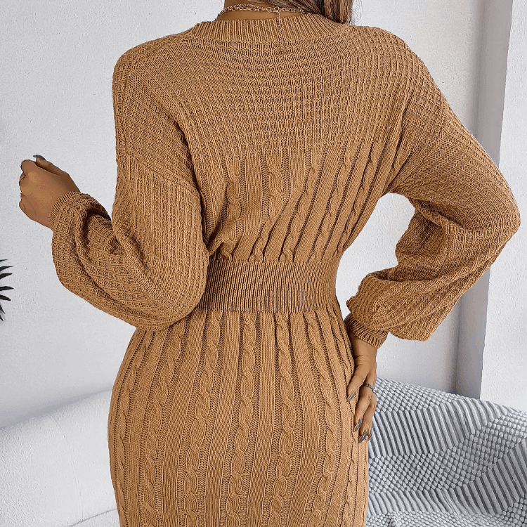 Whether you're heading to a brunch with friends or a cozy evening gathering, this dress adapts effortlessly to your plans. Pair it with boots for a casual look or dress it up with heels and accessories for a more polished appearance. The versatility of this dress makes it a must-have for any fashion-forward woman.