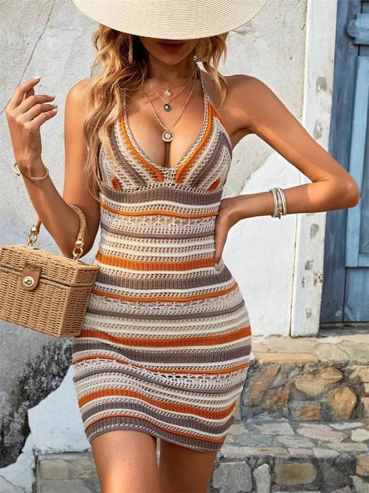 Get yours now and beat the heat in style. Embrace the summer vibes with the Women Summer Halter Knitted Mini Dress and make every moment memorable!