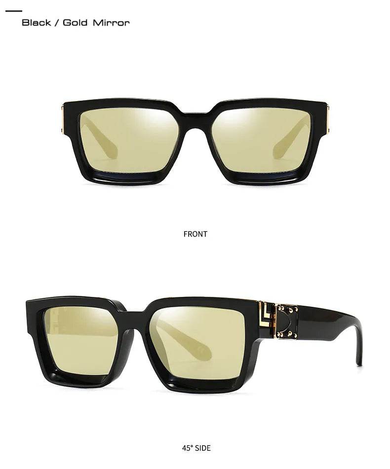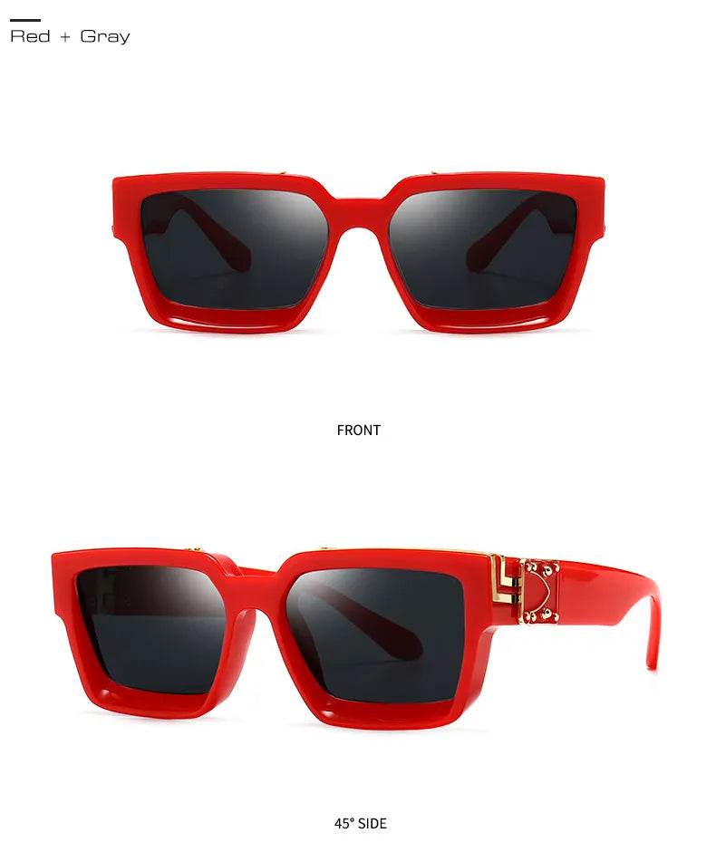 Available in a variety of lens colors such as Black Blue, Clear Golden, and Red Gray, these sunglasses can match any outfit or mood. The frame colors are as vibrant as the lenses, offering a unique look that stands out in any crowd.
