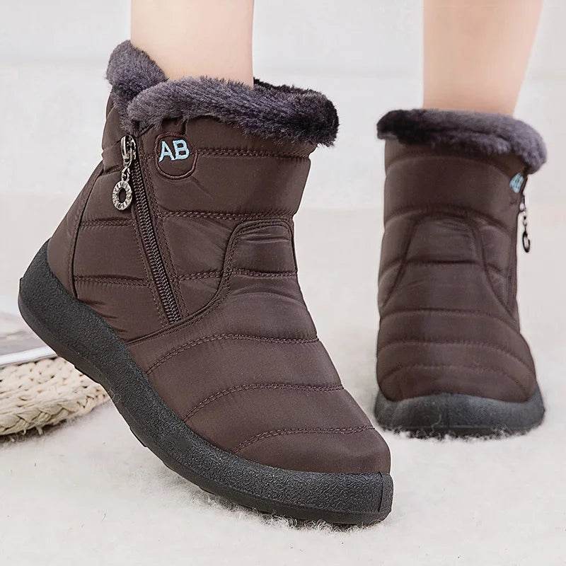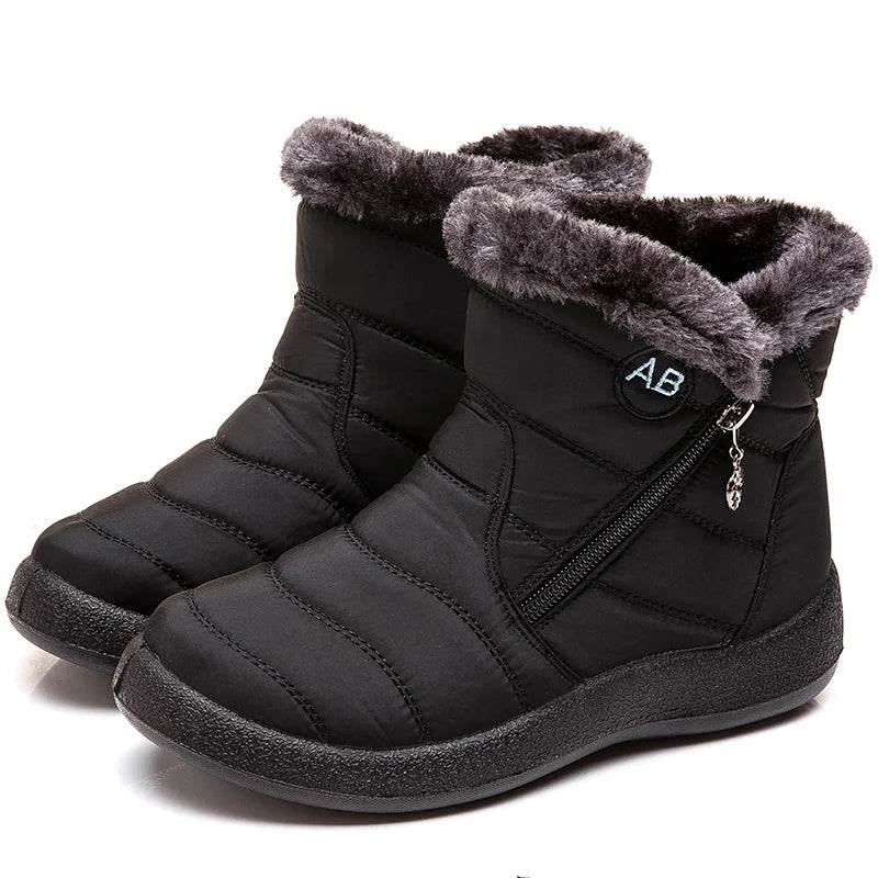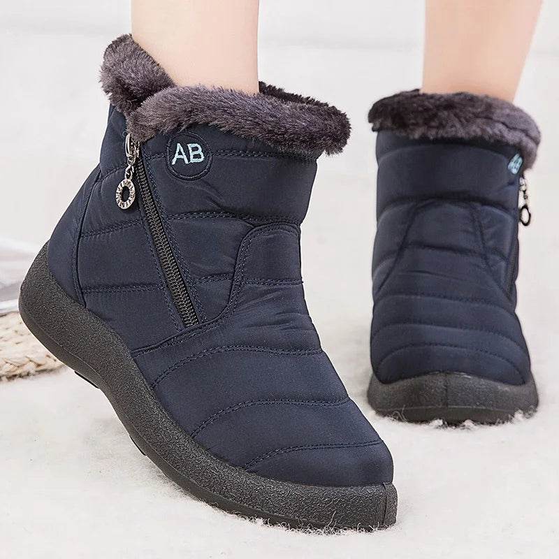 Women Waterproof Round Toe Zip Ankle Boots