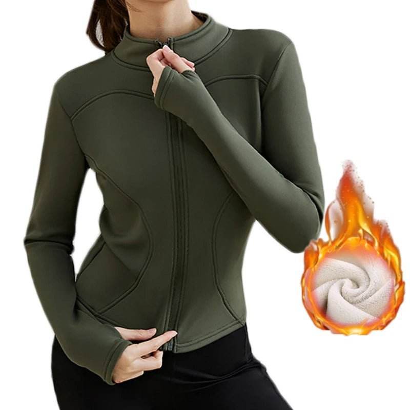 Women Winter Fleece Yoga Long Jacket